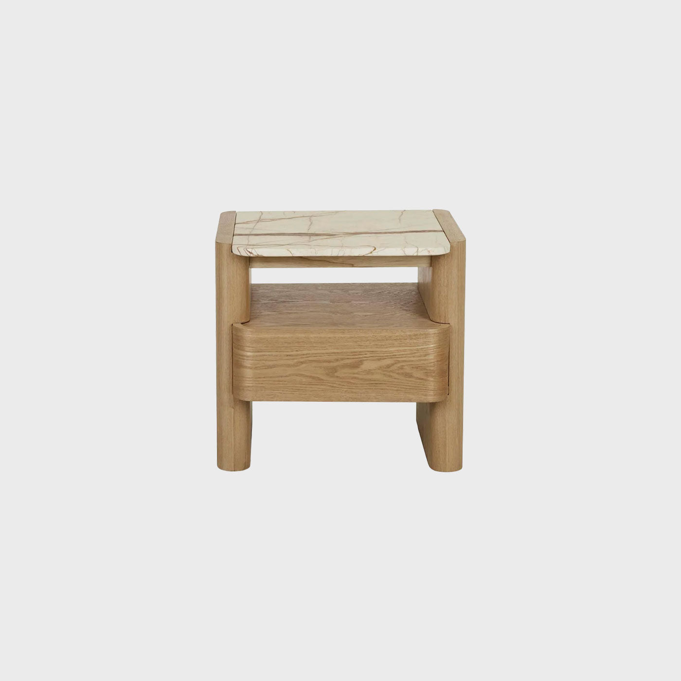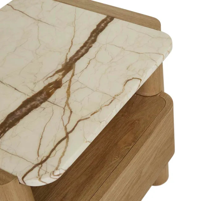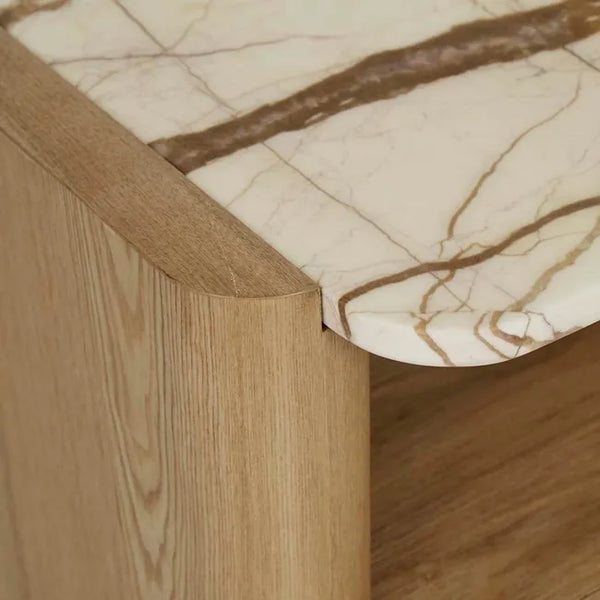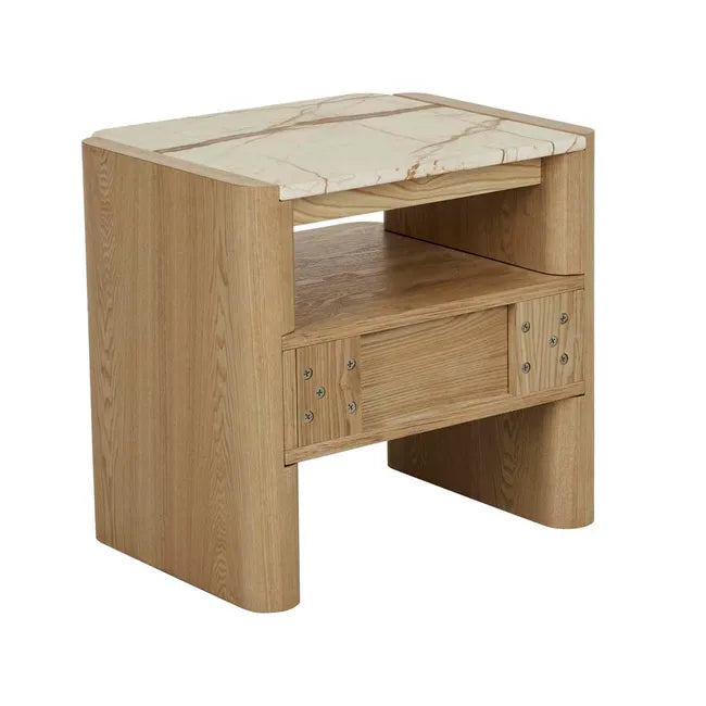 Natural Ash Veneer Bedside with Matt Brown Vein Marble Top