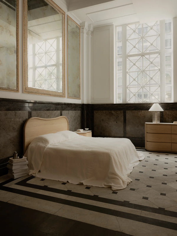 To give a solid form the movement and shape of water - to craft wood into an impossibly beautiful curve - is as much about poetry as it is craftsmanship, and requires as much skill as it does vision. The Remy Bedhead achieves just this. Through the simplicity of a single line, its elegance is unending and creates an atmosphere that is as serene as it is, unequivocally striking.