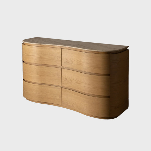 GlobeWest | Eyre Console Table - White Marble - Wirebrushed Oak