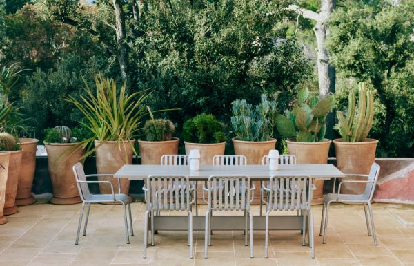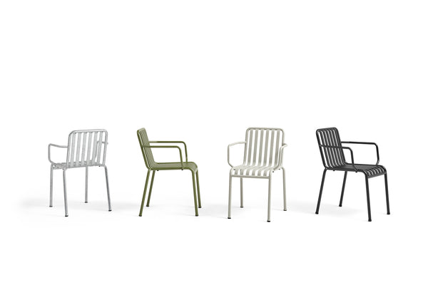 Palissade is a collection of outdoor furniture designed by Ronan and Erwan Bouroullec for HAY. The collection was designed to fit a wide variety of environments: cafés, restaurants, gardens, terraces and balconies. The construction allows a wide range of typologies with a common formal language. From stools and benches to chairs and tables, lounge chairs and sofas – the collection comprises 13 different elements, united not only by their graphical image but also by their common characteristics: they are strong without being bulky, elegant without being fragile.
