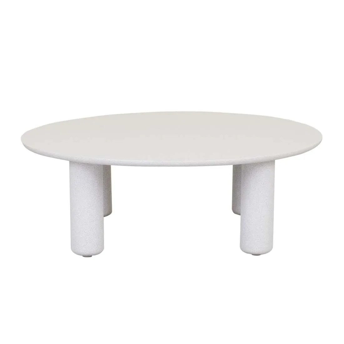 Update your outdoor space with the Artie Pillar Coffee Table in White Speckle. It is made from handcrafted fibrestone for a lightweight durable finish. This all-weather table features a classic round top paired with three modern pillar legs to complement any outdoor style.