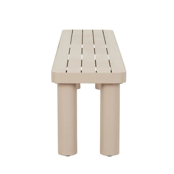 The Frankie Outdoor Bench seat in Sandcastle adds contemporary elegance to your outdoor space. Featuring contemporary design with statement cylindrical forms. Designed with aluminium frame and lightweight construction, it offers both style and practicality. Ideal for modern settings, this bench seat enhances the aesthetic appeal of any area. The powder-coated finish and weather-resistant construction ensure lasting beauty and functionality.