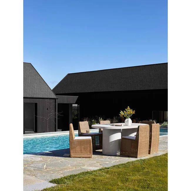 The Petra Oval Dining Table is a contemporary classic that makes the perfect statement for your outdoor dining experience. Constructed from glass-reinforced concrete (GFRC) with a natural pitted finish, this timeless design will add flair and function to your outdoor dining space.