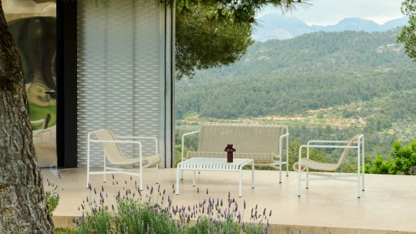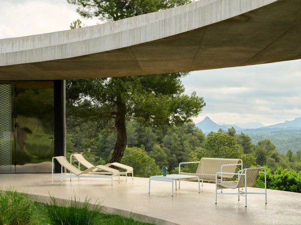 Palissade is a collection of outdoor furniture designed by Ronan and Erwan Bouroullec for HAY. The collection was designed to fit a wide variety of environments: cafés, restaurants, gardens, terraces and balconies. The construction allows a wide range of typologies with a common formal language. From stools and benches to chairs and tables, lounge chairs and sofas – the collection comprises 13 different elements, united not only by their graphical image but also by their common characteristics: they are strong without being bulky, elegant without being fragile.