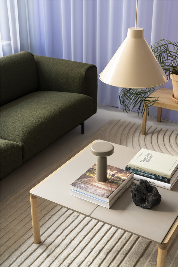 Inspired by shapes of traditional table lamps, the Ease Portable Lamp transforms this typology into a carriable size suitable to take wherever. Ease offers a high-quality dimmable, no-glare light with 3 levels, striking a balance between atmospheric and functional light. The design has a distinct lightness to it, with the top and bottom gently touching. A slightly flared bottom mimics the lip of a vase in a grounding gesture that allows the base to be slimmer and easier to grab. Ease Portable Lamp is a humble friend with a strong character that works alone or in repetition in any setting; from the bedside, reading nook and home office to the café table, co-working space or library.