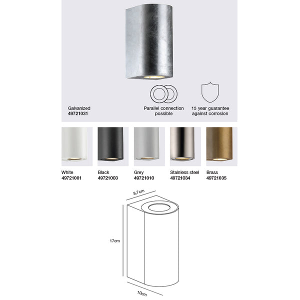 Specifications Rated IP44 for outdoor use. 15 year anti corrosion guarantee on Galvanized and Brass.
