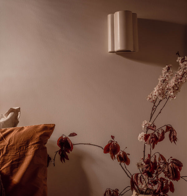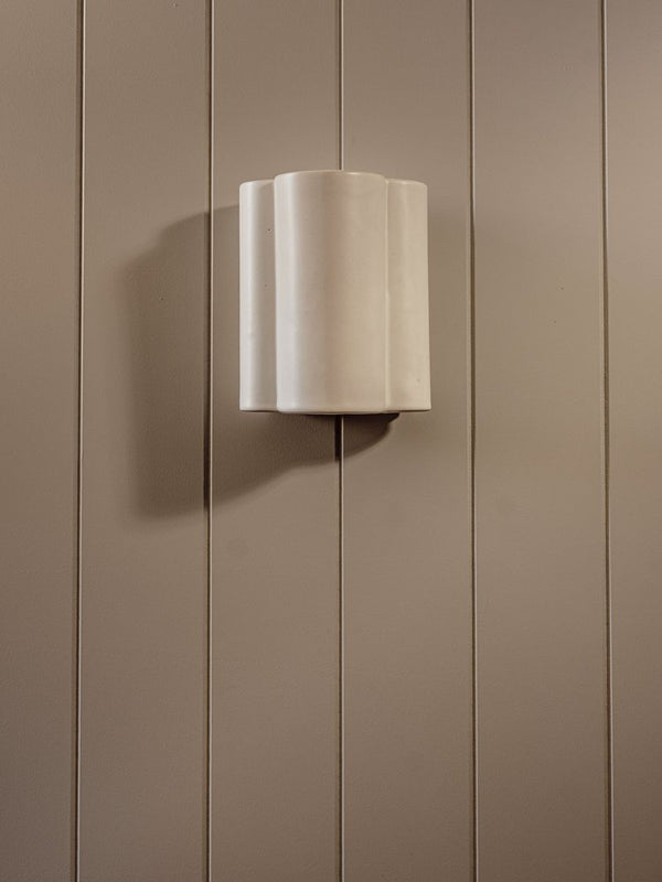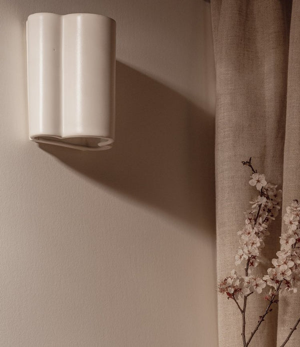 The Cloud Wall Interior or Exterior Wall Light from We Ponder is crafted from recycled clay, this light is a perfect blend of style and sustainability. The curved design inspired by clouds creates a striking downward V light and a subtle upward glow, all hand-dipped in our We Ponder signature eggshell white glaze and fired twice at extreme temperatures. Each light is unique, with slight variations in finish and form, adding character and personality to your space. With a closed ceramic top for both interior and exterior use.