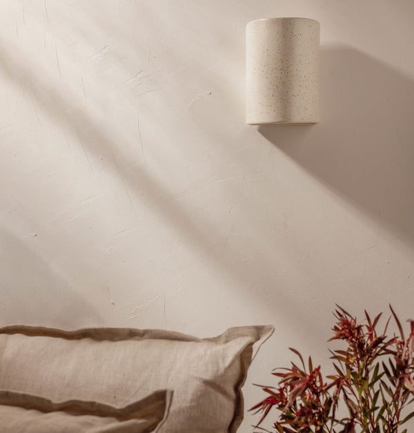 The Freckles Short Interior Ceramic Wall Light from We Ponder will bring a touch of sunshine to your space. Handmade in Tasmania, this charming light brings a touch of warmth and coziness to any room with its subtle yet dynamic downlight. We Ponder have used a secret formula glaze technique, suspending iron oxide in a low sheen white glaze to create a delightful chemical reaction that gives Freckles its warm and freckled finish, just like it's been kissed by the sun!