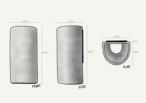 Dimensions H 260 mm x W 120 mm x D 100 mm +/- 5 mmWEIGHT: 2 kg approx