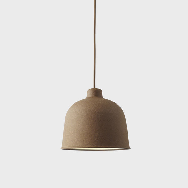 The traditional pendant silhouette receives a poetic reinterpretation with the Grain Lamp. Simple and elegant, the lamp has small grains of fiber in its surface, creating a subtle texture and change in the diffusion of light. The pendant includes an LED lightbulb that lasts for up to 10,000 hours and provides a warm, natural glow