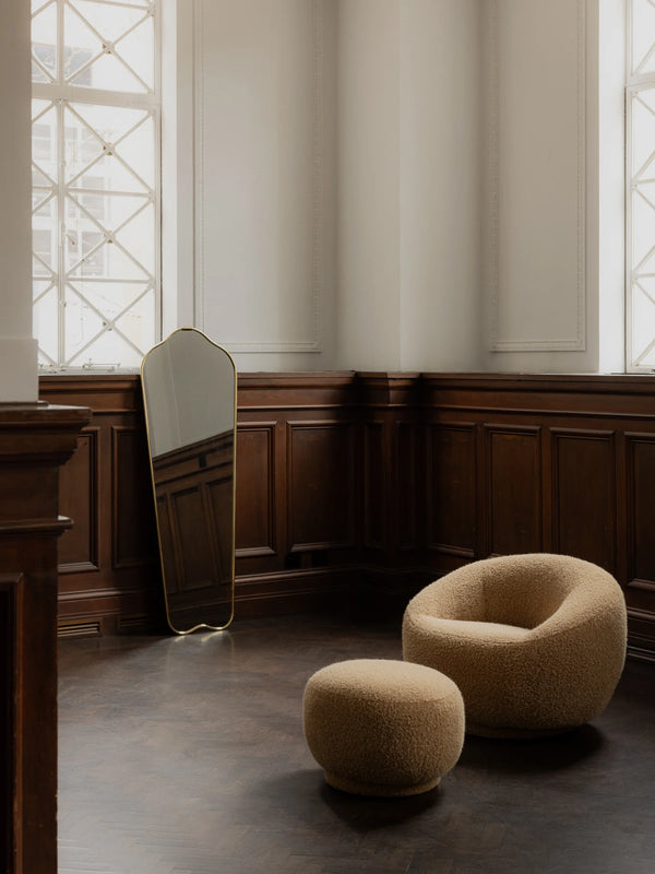 The Bombo Ottoman articulates all the warmth and comfort of a softly lit room - quietly unassuming, yet tonally and texturally sumptuous. An extended invitation to stop and to rest, the pairing is like the arms we’d extend to a guest - an intimation of welcome and open embrace.